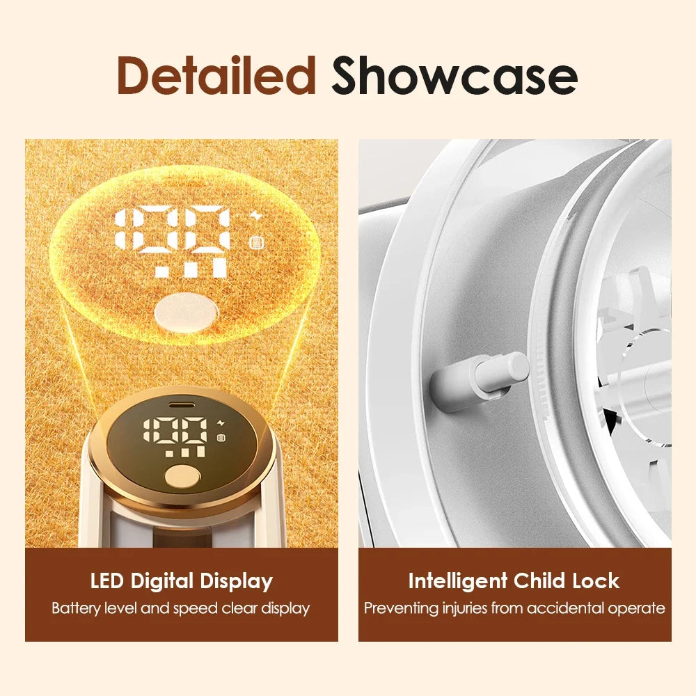 🔒 Safety Child Lock: Automatically stops when the cover is loose or blocked.